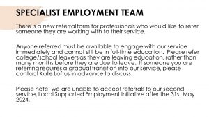 Specialist CollegesIn most cases you will be find a suitable course at a college local to where to you live. But if you have very complex needs, you may need to look at Specialist Colleges. A specialist college provides education for SEND young people only. You will need an EHCP to go to one of these and agree funding with Sandwell Council’s SEND team. Find detailed information about Specialist Colleges at the NATSPEC website. |